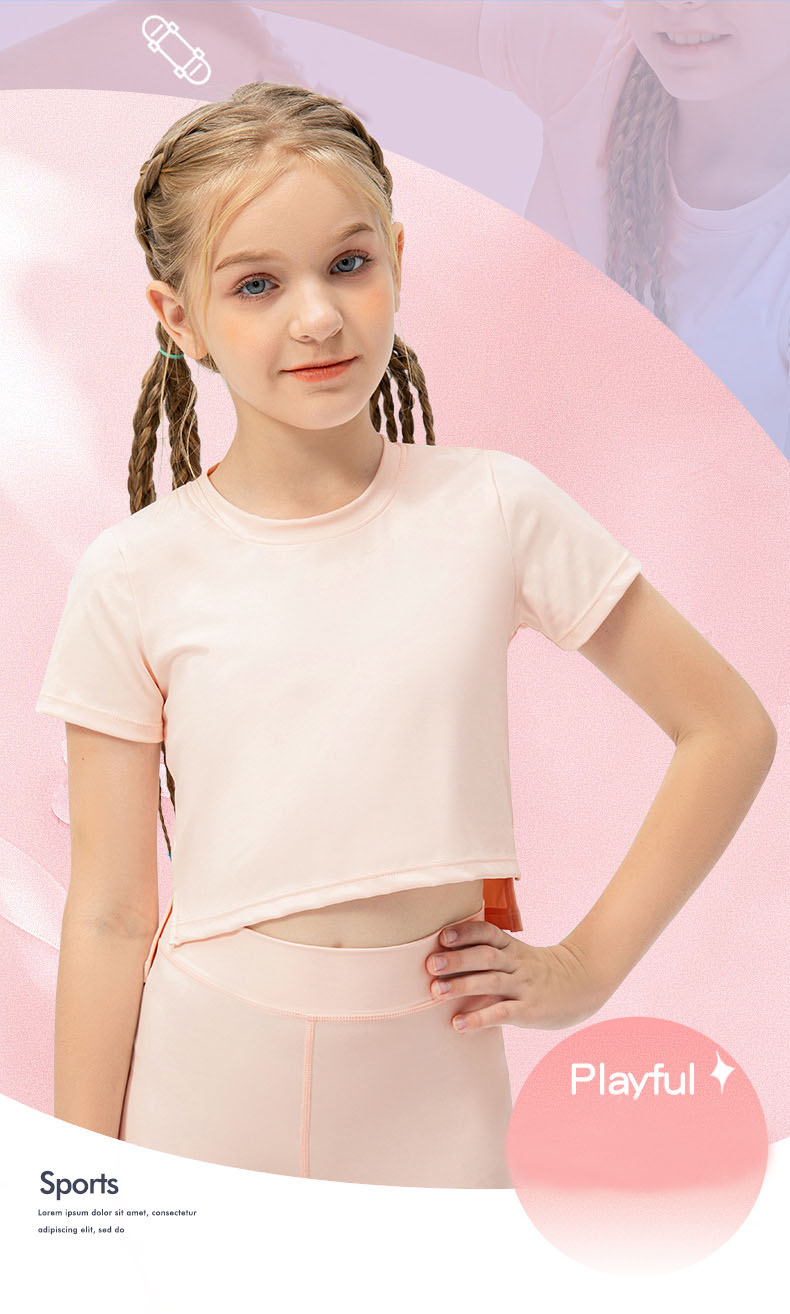 NWT Girls Kid Short Sleeve Shirt Cute Quick Dry Breathable Stretch Kids Children Yoga Sports Dance Tank Top Short Shirts