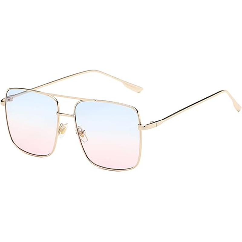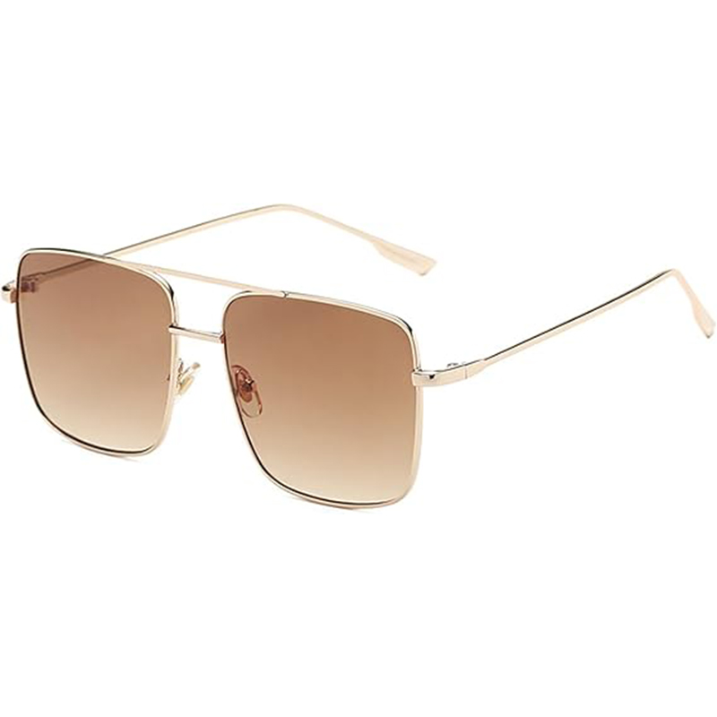 Trendy Oversized Square Sunglasses for Women Double Bridge Metal Frame