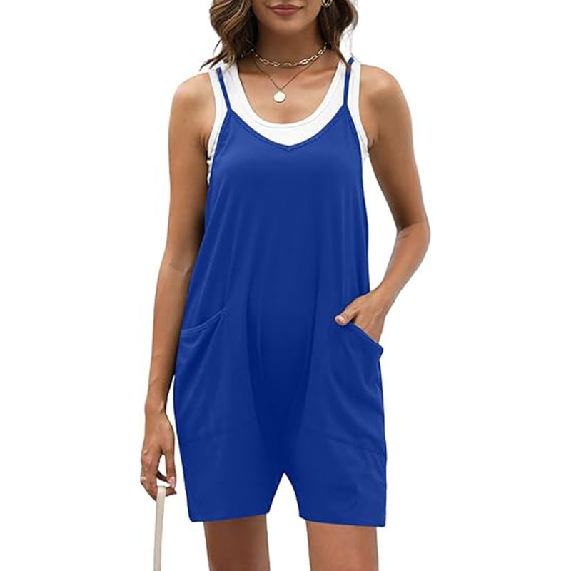 Women Loose Spaghetti Strap Shorts Jumpsuit with Pockets