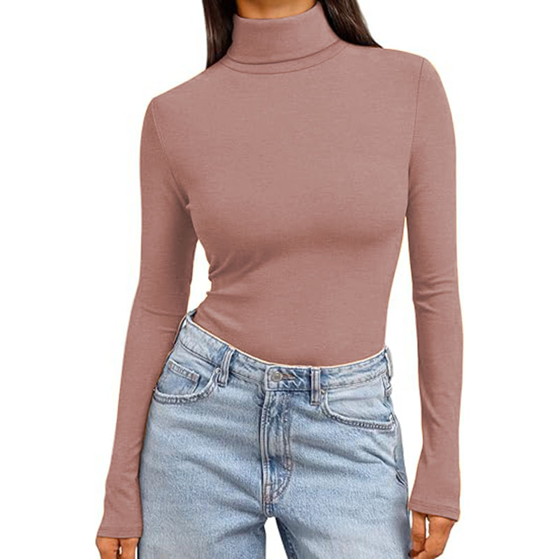 Women Turtleneck Long Sleeve Shirt Lightweight Base Solid Slim Fit Top