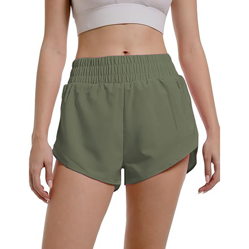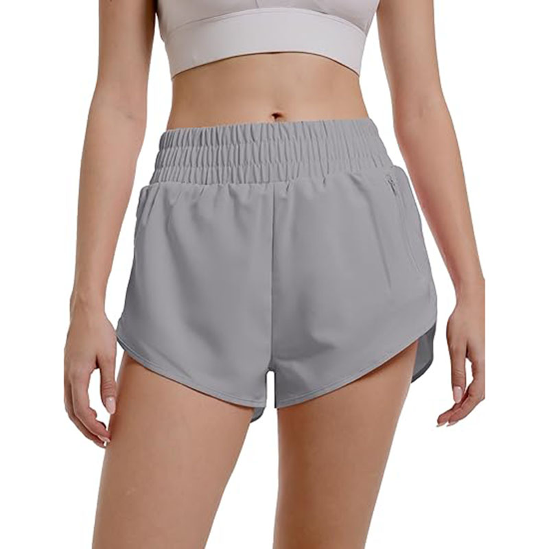 Womens Athletic Running with Zipper Pocket Workout Gym High Waisted Shorts