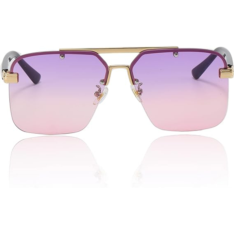 Womens Large Square Rimless Frame Sunglasses